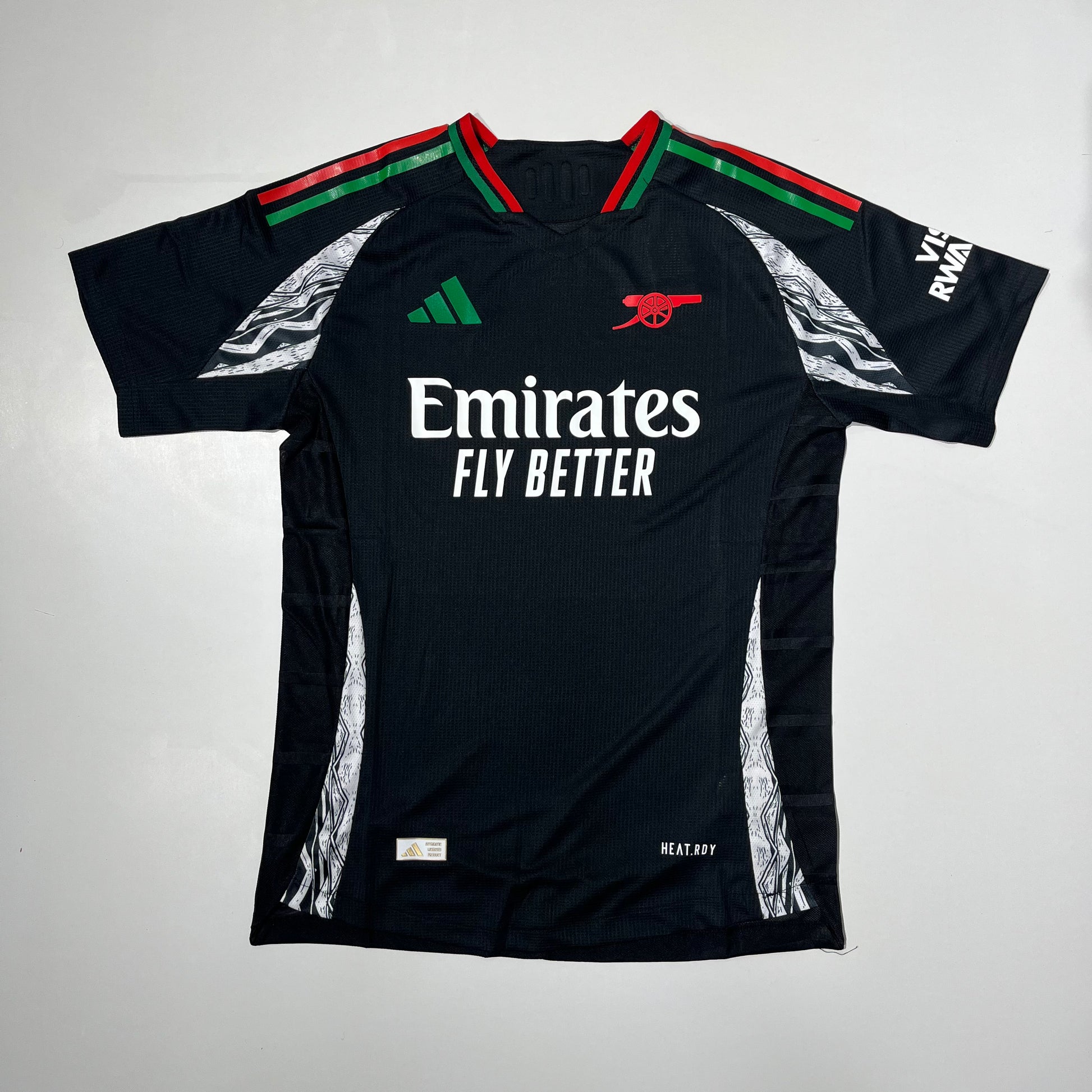 Détails authentiques : Logo adidas et sponsor "Emirates Fly Better" en blanc, ajoutant une touche d'élégance.